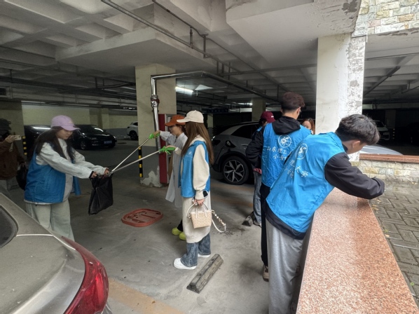 讲座结束后,小音符们迅速转换角色,投入到志愿服务中。他们来到了社区地下车库,大家分工明确、齐心协力,有的拿着扫帚仔细清扫地面的灰尘和杂物,有的拿着抹布认真擦拭车库内的标识牌和消防设施,还有的负责清理角落里的垃圾,为社区的整洁贡献一份自己的力量。