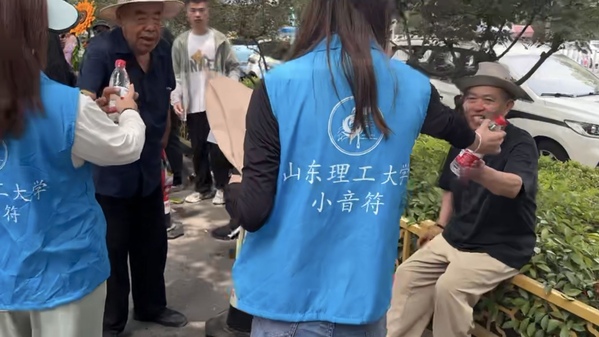 为助力淄博市实验中学高考生从容应考,6月7日上午,音教2403班团支部开展了一场别开生面的主题团日活动。同学们精心准备了向日葵、饮用水与扇子,为考场外紧张备考的考生送去清凉与鼓励。