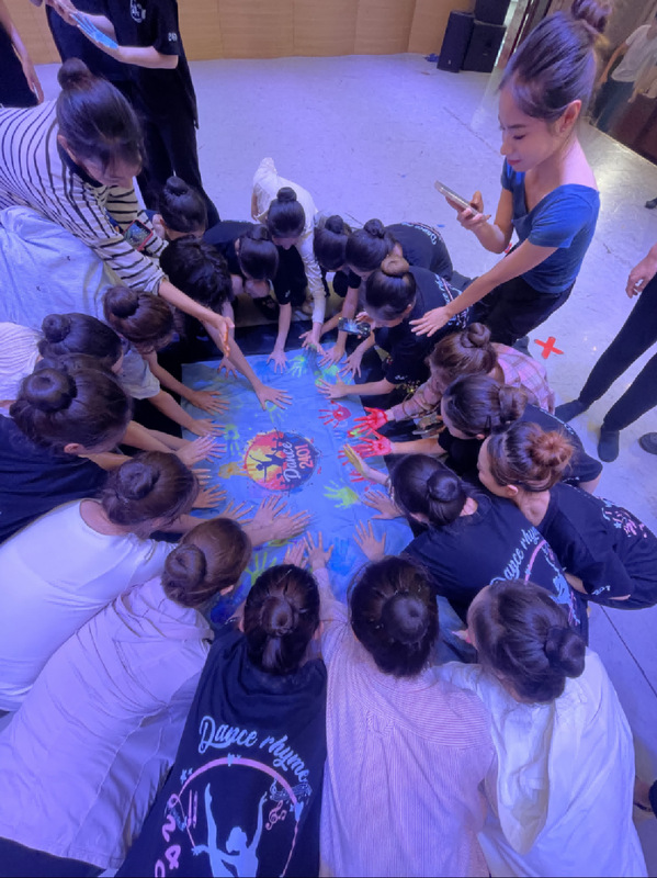 在按手印的过程中,大家脸上洋溢着笑容,眼中闪烁着期待。每一个手印都承载着对过去的回忆和对未来的憧憬,仿佛在诉说着我们心中的故事。这次团日活动让我们更加紧密地团结在一起,加深了彼此之间的了解和友谊。我们深知,未来的舞蹈道路上可能会有挑战和困难,但只要我们齐心协力,就一定能够克服一切。班旗上的这些手印将成为我们共同的记忆,激励着我们在大二的学习和生活中不断前进,追求卓越。