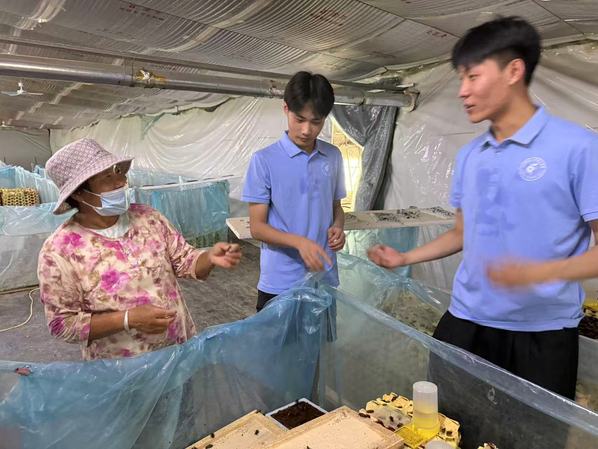 看着大棚里一只只活泼的蟋蟀,听着养殖人员的细致讲解,实践团成员们纷纷表示大开眼界。大家不仅了解了蟋蟀养殖的专业知识,更感受到了现代农业在多元化发展道路上的创新与突破。
