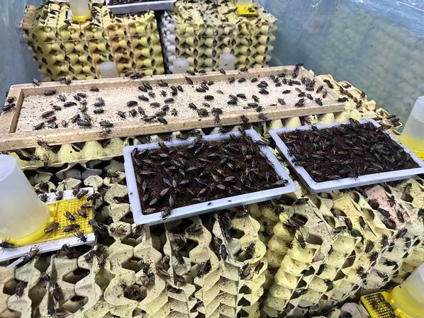 专业养殖人员热情地接待了实践团成员,向大家详细介绍起蟋蟀养殖的奥秘。他指着一排排整齐的养殖盒说:“这些蟋蟀可不是普通的蟋蟀,它们是经过精心选育的品种,从虫卵孵化到成虫,每个阶段都有严格的管理标准。” 成员们凑近观察,只见养殖盒里铺着放置鸡蛋的壳子,蟋蟀们在里面灵活地跳跃着,有的在觅食,有的在嬉戏,充满了生机与活力。