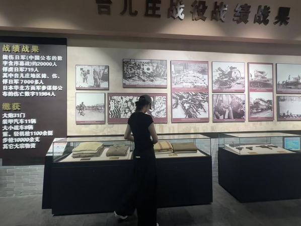 实践团成员们怀着崇敬的心情,走进展览馆。一幅幅泛黄的照片、一件件锈迹斑斑的武器、一段段感人的文字记载,将大家的思绪拉回了 1938 年那场惊心动魄的战役。台儿庄大战是抗日战争时期中国军队在正面战场取得的一次重大胜利,中国军队以血肉之躯抵挡日军的猛烈进攻,用牺牲和勇气谱写了一曲气壮山河的英雄赞歌。