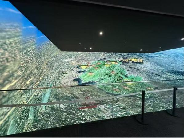 这座以“桃源洞天”为设计灵感的建筑,总建筑面积达6.8万平方米,集20余个功能场馆于一体,宛如一颗璀璨的明珠镶嵌在城市之中。历史与现代在此交织成一幅绚丽多彩的动态画卷,瞬间吸引了实践团成员们的目光。“未来蓝图”展区更是将实践团成员们的期待推向了高潮。在互动屏上,成员们还亲自“规划”了自己的社区,选择幼儿园、菜市场、社区医院的位置,系统自动计算步行时间与公共服务覆盖率,这种沉浸式的体验让大家对肥城的未来充满了憧憬。