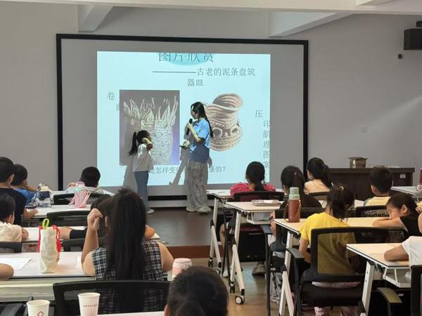 课程开始,实践团成员首先以生动有趣的语言介绍了中国陶艺的悠久历史和文化内涵,从新石器时代的彩陶到唐宋瓷器的辉煌,孩子们听得津津有味,眼中充满好奇。