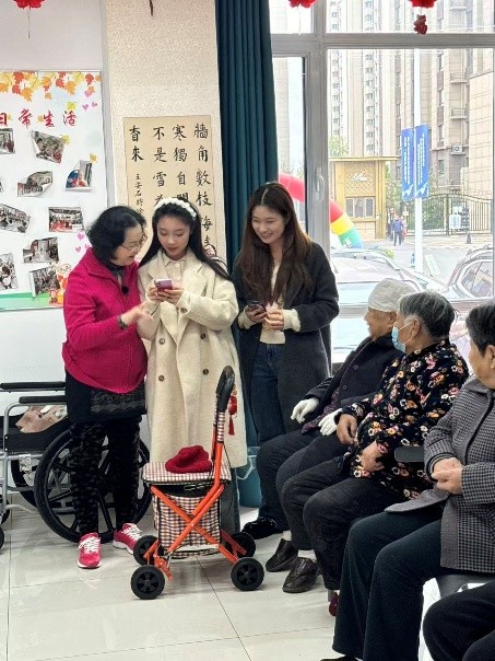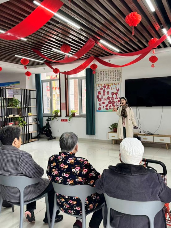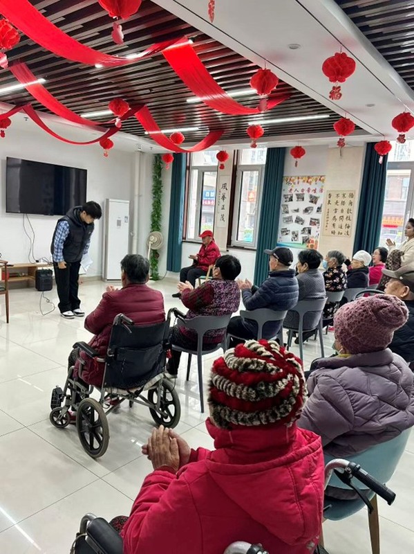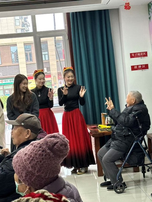 在活动过程中,同学们带来了精心准备的节目。舞蹈组的同学献上了一场活力满满的群舞,轻盈的步伐和灿烂的笑容瞬间点燃了现场的气氛,为爷爷奶奶们送上了最热情的问侯。