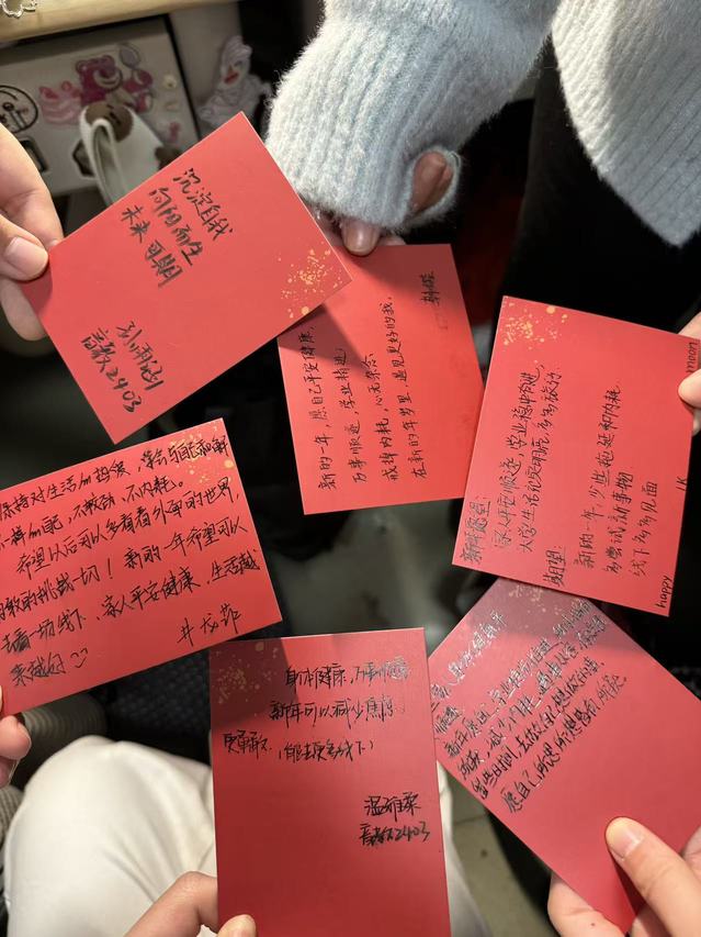 此次以宿舍为单位的跨年心愿贺卡活动,既让同学们在忙碌的学习生活中找到了抒发情感的出口,又以独特的方式增强了班级的凝聚力与向心力。同学们纷纷表示,新的一年将带着这份心愿与期许,脚踏实地、奋勇前行,用青春与汗水书写属于音教2403的崭新篇章。