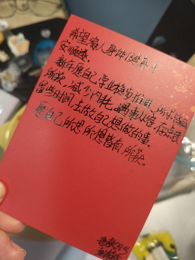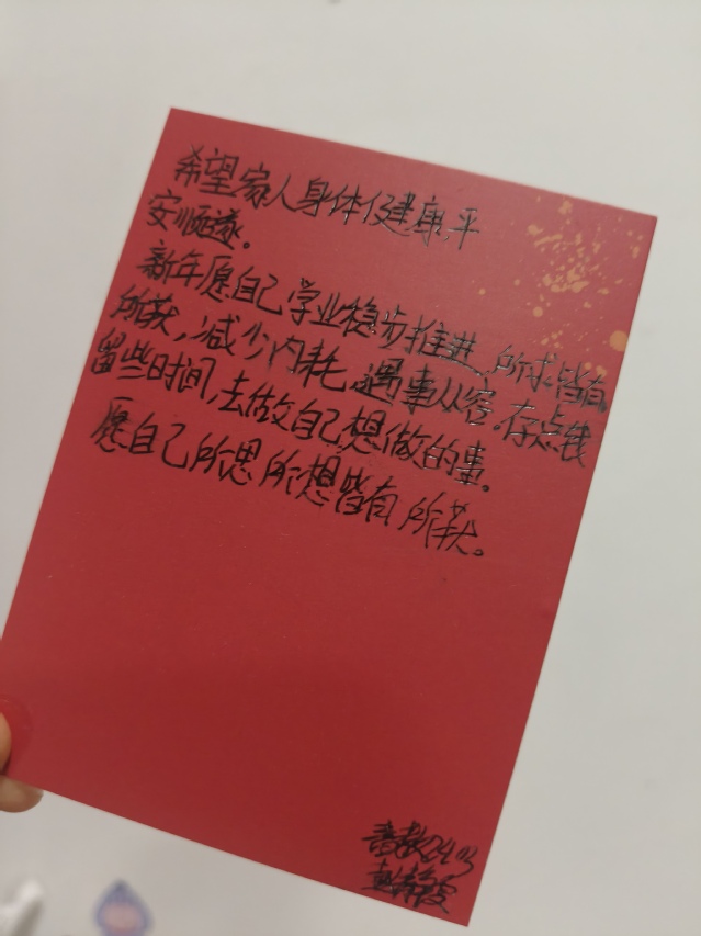 孙雨涵:把对家人的祝福写在贺卡上,突然觉得新年的期盼不止有学业,还有满满的温情。