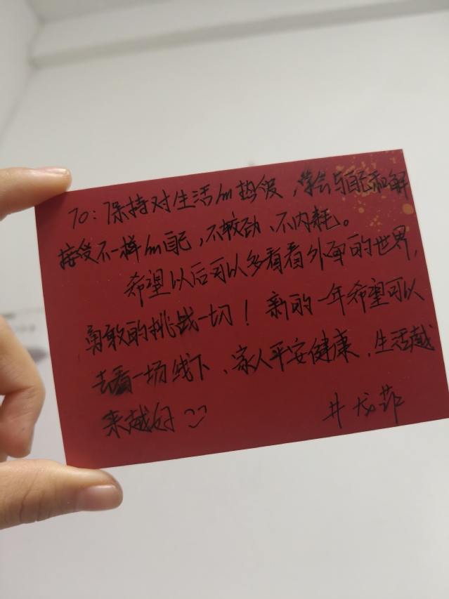 杨学研:制作心愿卡的过程很治愈,忙碌的学习之余,能有这样一段时光梳理心情,感觉特别放松。