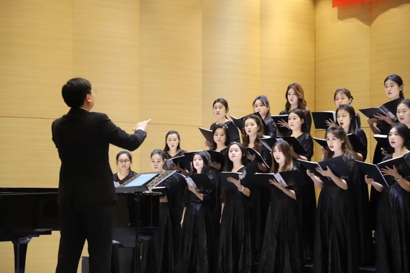 12月25日晚七点,2026合唱新年音乐会在音乐厅举行,淄博市音乐家协会主席、淄博市老干部服务中心银晖艺术团团长车玲,淄博市张店区重庆路小学董事长郑瑞梅,淄博市老干部服务中心主任张云一行,z6mg人生就是博领导班子和全校200余名师生共同观看演出。