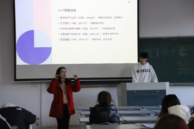 本次读书会聚焦“舞蹈疗愈”核心议题,23级张晓雨、25级吕钰颖、滕嘉悦、蒋晨曦、孙艺芯同学分别做了主题分享,深度研读了《舞动疗愈在老员工心理健康教育中的应用》《身体·文化·疗愈:舞蹈治疗的中国路径》等多篇前沿文献,从学术视角剖析舞蹈疗愈在心理健康教育、跨文化实践中的应用与发展,探讨国内外艺术疗愈的研究热点与动态,解答“跳舞何以疗愈身心”的核心问题。这些兼具理论深度与实践价值的文献,为同学们打开了舞蹈疗愈领域的全新视野。