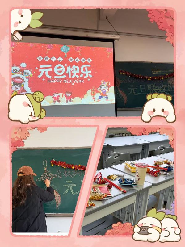 欢声笑语迎元旦,凝心聚力向新程。12月30日,音教2503班团支部元旦联欢活动在教室顺利开展。本次活动全程以趣味游戏为主线,班委们精心筹备,辅导员刘洁老师与全体同学欢聚一堂,在欢声笑语中共同迎接新年的到来。