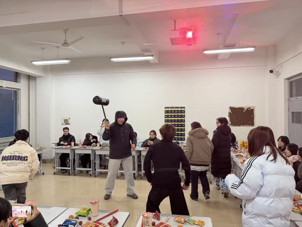 “暴打尖叫鸡”环节成为全场解压亮点,随着游戏的开始,尖叫鸡发出的高亢搞怪的声响逗得同学们前仰后合,大家把一学期以来的学习压力与疲惫,都融进了这畅快的敲击和肆意的笑声里。