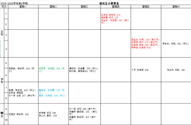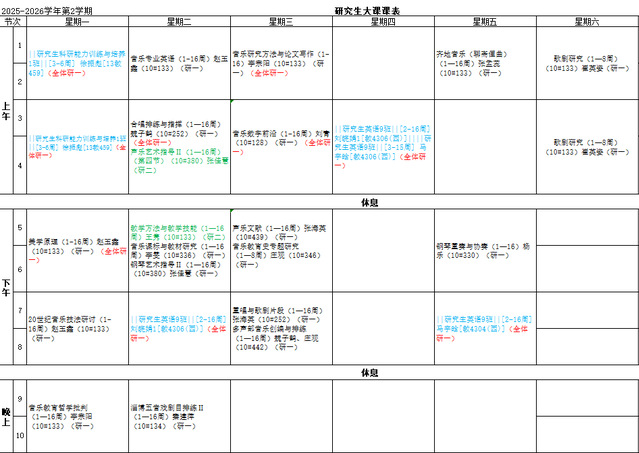2025-2026第二学期研究生课程表