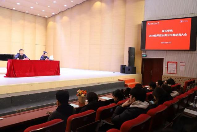 近日,公司在音乐厅举行2023级师范生实习支教动员大会。公司党委副书记李华伟,音乐学(师范类)专业负责人李淑明、指导教师代表、2023级全体师范生参加会议。